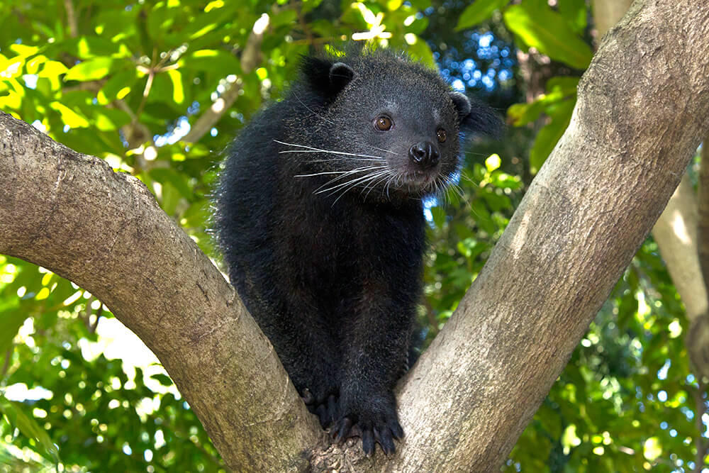Tienen una cola prensil (como un mono) que usan para agarrarse a las ramas. En serio, pueden colgarse boca abajo y parecer que están meditando o tramando algo. Porque el binturong siempre tiene cara de saber un secreto que tú no sabes.
